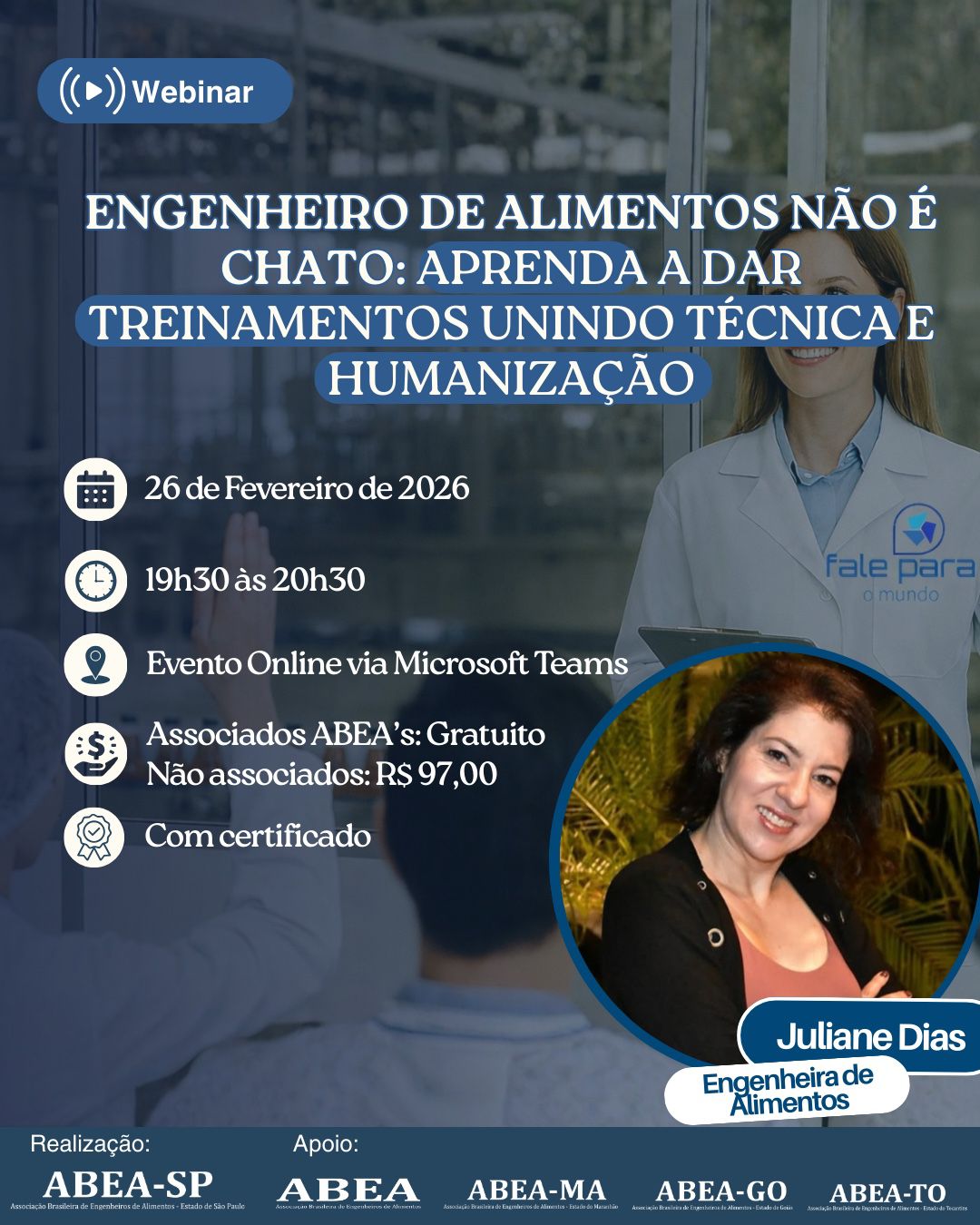 📢 A ABEA-SP convida você para o Webinar: Engenheiro de Alimentos não é chato: aprenda a dar treinamentos unindo técnica e humanização